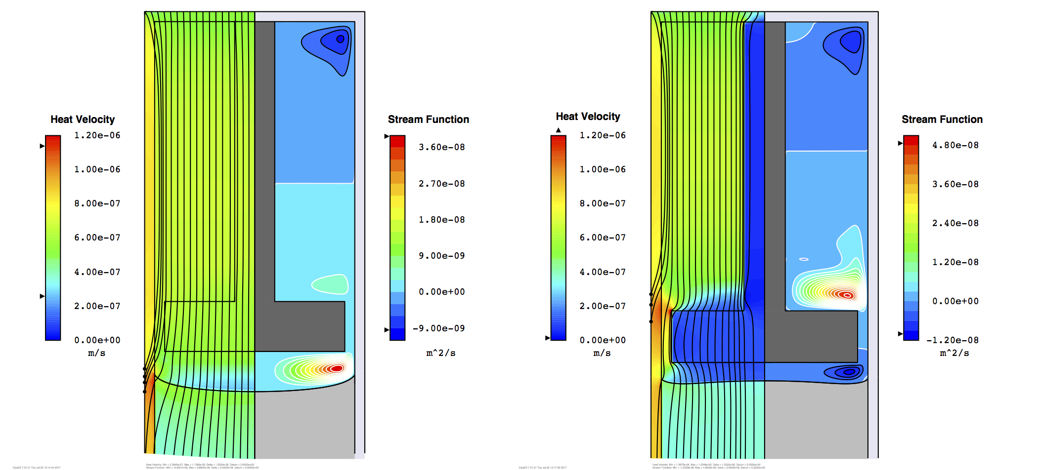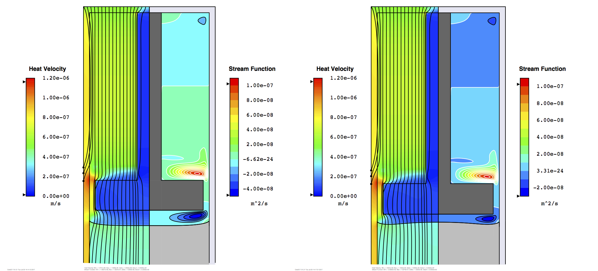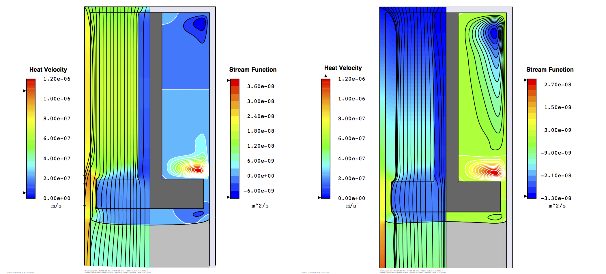 Temperature isotherms and streamlines are shown below for