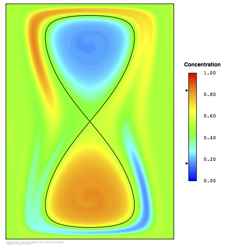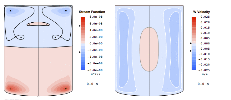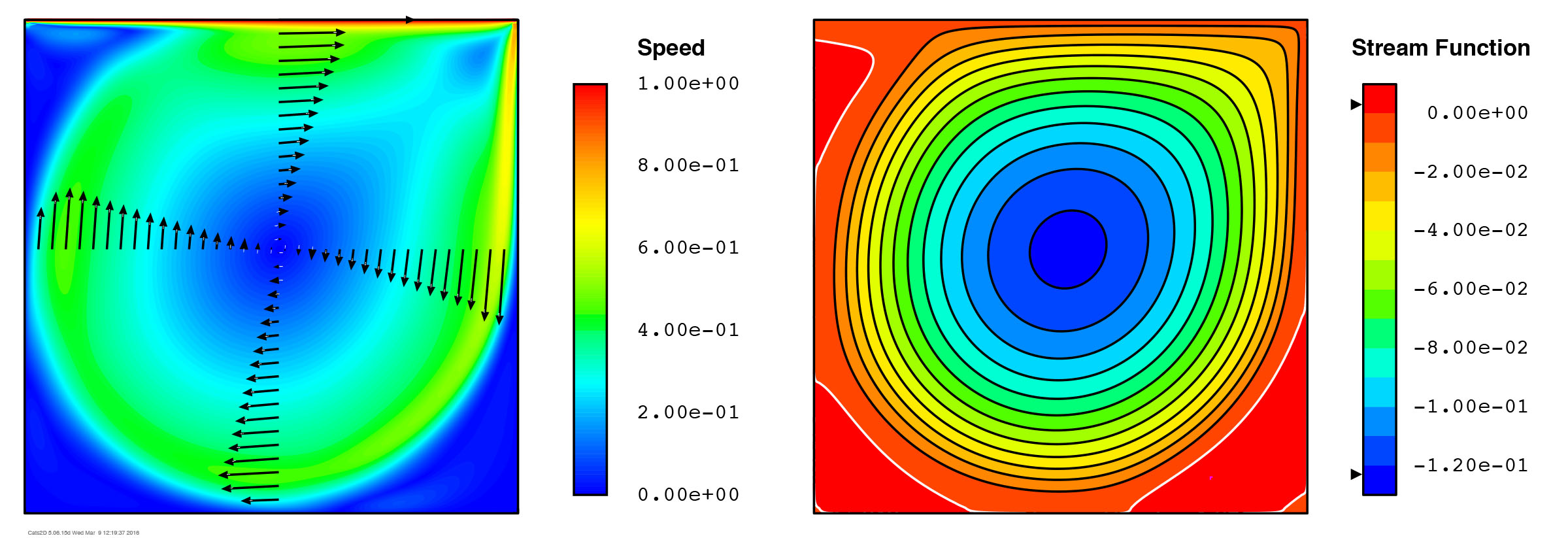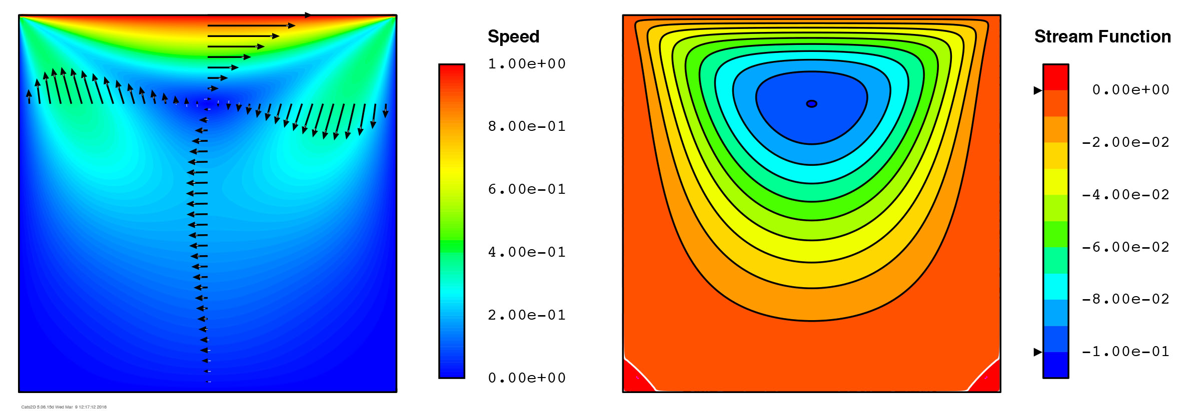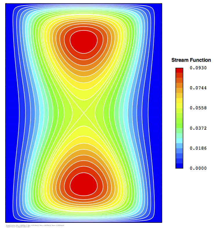 Among numerical solutions, the lid-driven cavity (my favorite computational test bed ever) is exceedingly well documented. The flow has a non-trivial structure that depends strongly on Reynolds number. It is perhaps the most important test problem in CFD. Other well documented flows are Rayleigh-Bénard convection and Taylor-Couette flow, which are especially useful for validating stability and bifurcation analysis. We have also used more complicated and specialized problems to validate Cats2D, for example melt crystal growth, my area of research for twenty years, and liquid film flows, where both Goodwin and I have done substantial work in the past. Every time we add new physics to Cats2D, we test the code against known results. Nothing is done on blind faith.