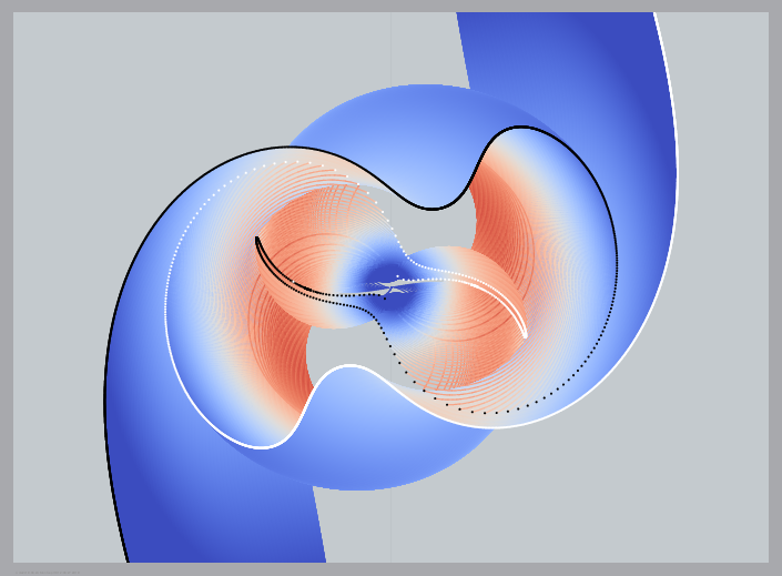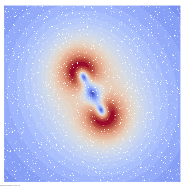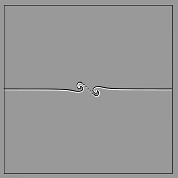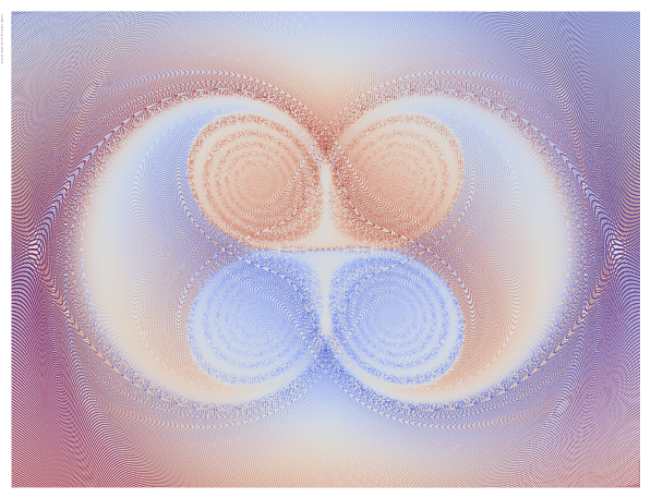An interacting pair of Lamb-Oseen vortexes was used to compute this drawing for my new Fandango collection, inspired by the works of Georgia O'Keeffe.