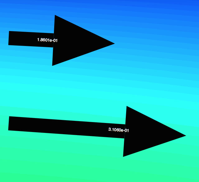 We* believe that image resolution should be unhitched from screen resolution, something we accomplish by using the Adobe Postscript page description language. The device-independent nature of this language and its close relative the PDF format allows us to embed high resolution information into images with low impact on file size or rasterization speed. For example, zooming in closely reveals that vector plots are labelled with the velocity on each arrow. Here is a screen shot of a boundary layer near a wall.