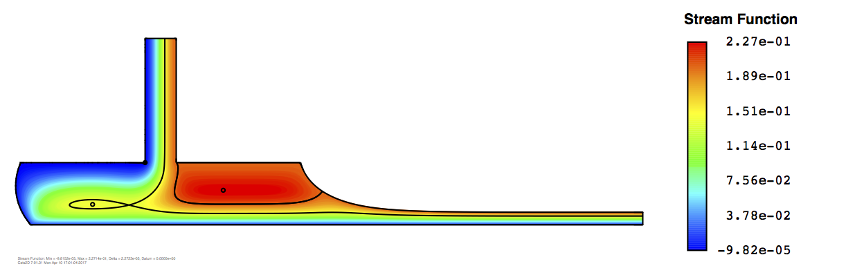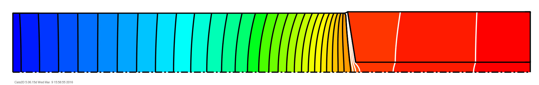 Fast forward seven years. On a whim one morning I decided to put together a simulation of the slot coater. This is a coating flow problem I worked on 25 years ago in Scriven's group. Cats2D is a fantastic code for solving problems of this class, though I haven't used it that way to any great extent over the years. I figured I could throw together a simulation of the exit region of a slot coater in ten minutes or so, Cats2D being such a great code after all.