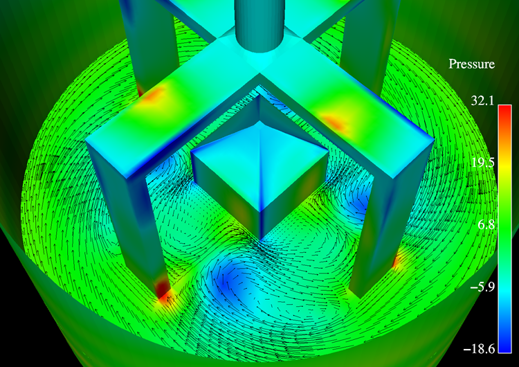 The examples I've shown above are somewhat contrived in that I've carefully selected cross sections on which to display arrows that are based on the simple structure of these flows. This approach is poorly suited to more general recirculating flows. The usual method in CFD is to distribute arrows more or less uniformly around the flow.