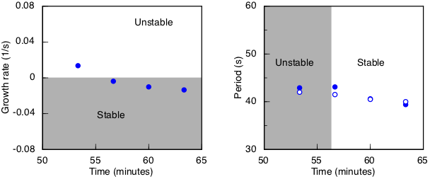 Capillarity and inertia both tend to keep the film uniform in thickness and curvature, and predominate in systems that are small or spinning rapidly, respectively. Either of these limits is convenient to obtain a first converged solution, since the position of the free surface is known to be a circle. I've shown here that these limits behave quite differently in terms of flow stability, however. A small system in which capillarity dominates inertia and gravity is always stable, whereas a rapidly spinning system in which inertia dominates capillarity and gravity is likely to be unstable. Completely different solution regimes can be accessed starting from these limits.