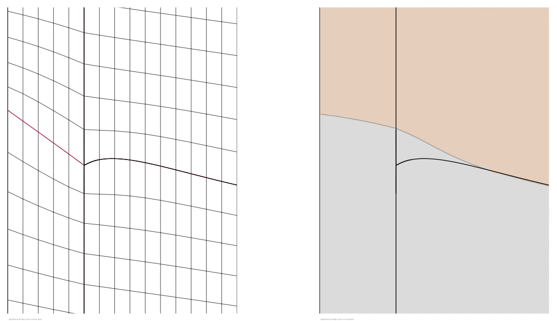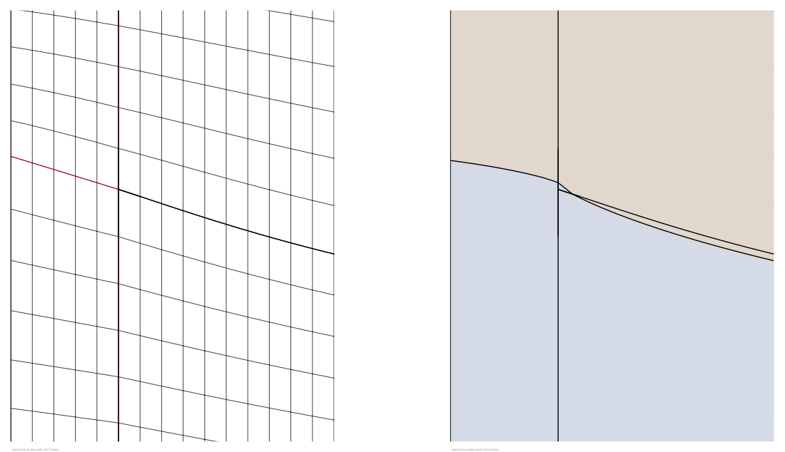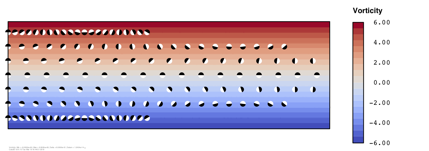 Rotating and mirroring can be selected interactively in the new plot transformations menu in the post-processor, or by command in the control file, e.g. plot(rotate(right)) or plot(mirror(vertical)). Plot mirroring can be used in either an automatic mode, in which the same field is displayed on both sides of the symmetry axis, or in a manual mode in which the user chooses a different field to display on each side.