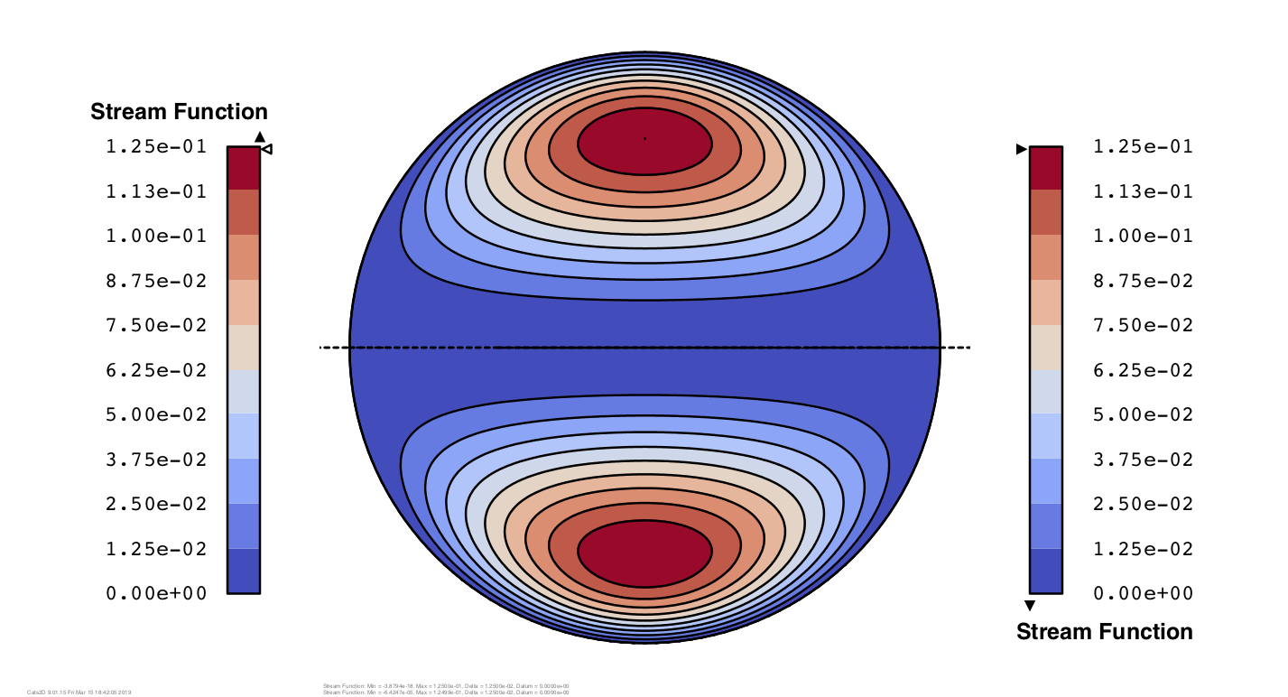 Since we are not personally worried about the correctness of the equations themselves, we have mostly been content to validate Cats2D against known solutions to the same equations, exact and numerical, published by others. Simple examples of exact solutions include Couette-Poiseuille type flows and solid body rotation. The solution varies in one space dimension only in these flows, but the test can be strengthened by rotating the domain to an arbitrary degree with respect to the coordinate system. Similarity solutions, for example Von Kármán swirling flow or Homann stagnation-point flow, make good test problems. Stokes flow past a sphere and Hill's spherical vortex have particularly simple but non-trivial two-dimensional forms that are excellent for quantitatively validating derived quantities such as streamfunction and vorticity. Many exact solutions in heat and mass transfer can be found in classic textbooks.
