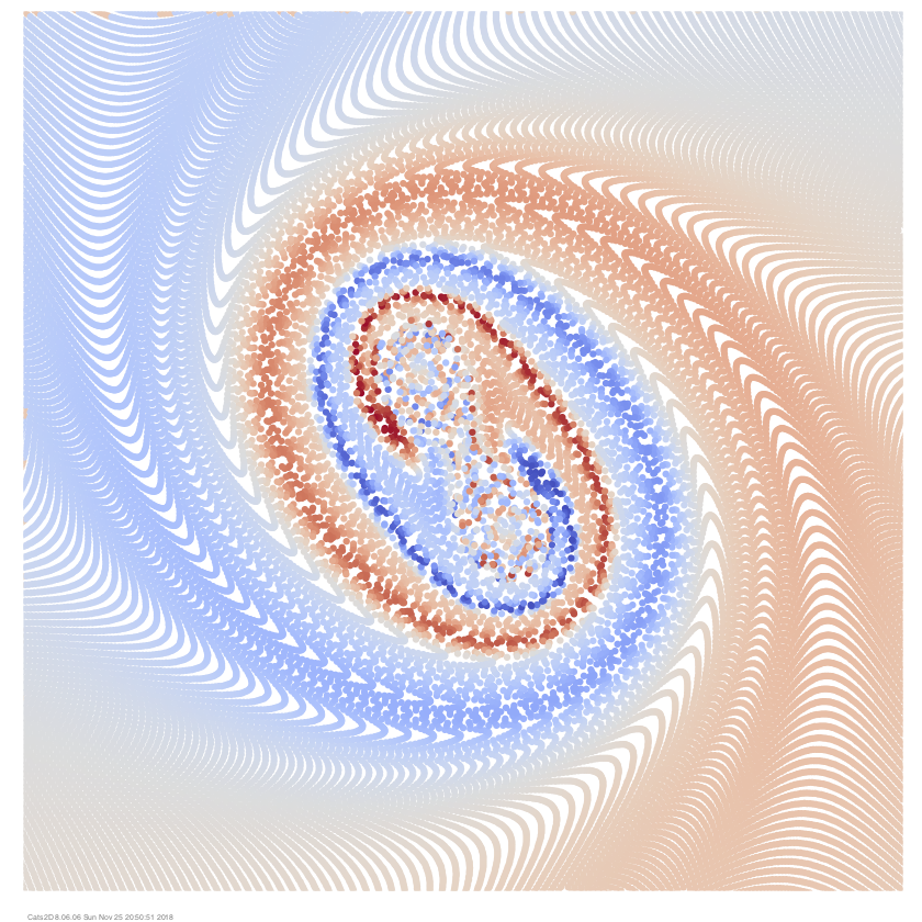 Another thing revealed by the high zoom level shown here is the smooth gradation of colors, free of the ugly pixelation found in plots from many commercial applications. Your Cats2D generated image can be printed at poster size and still look good from three feet away.